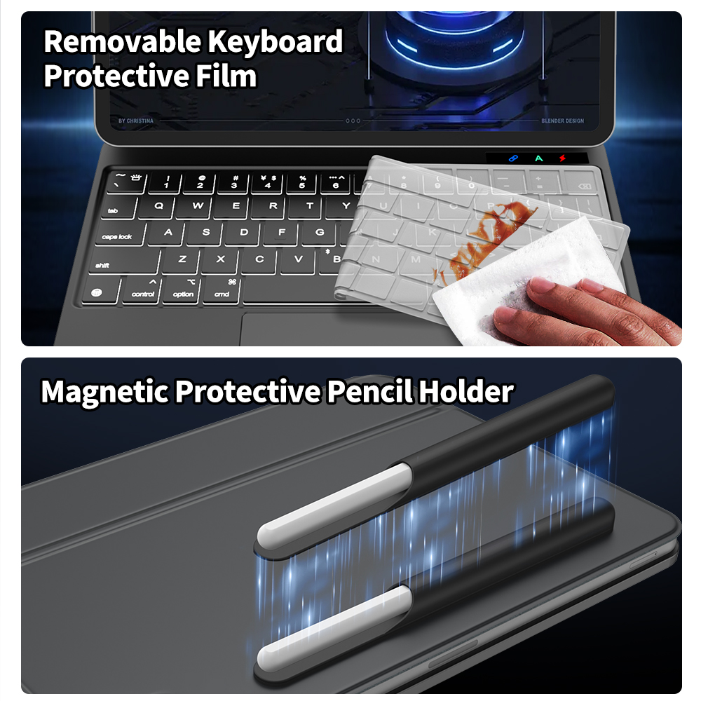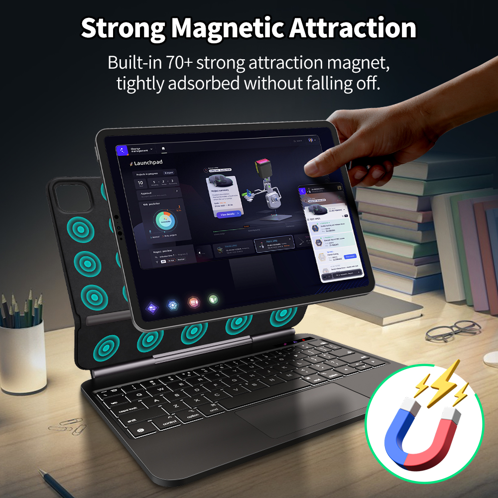 - Magnetic Suspension Design – Upgraded magnets hold your iPad securely in place, ensuring stability while typing or carrying.