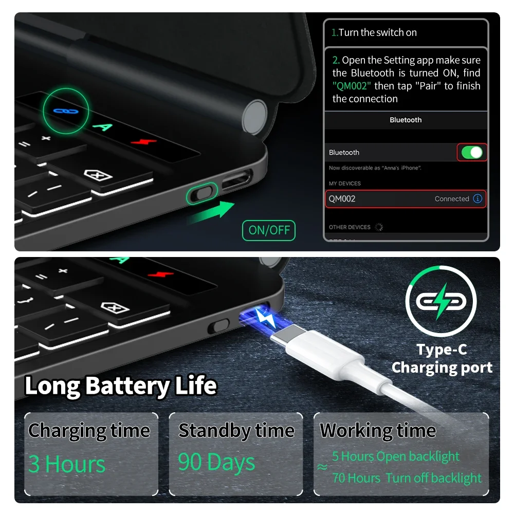 - Keyboard: Bluetooth 3.5 chip, automatic reconnection, lag-free typing