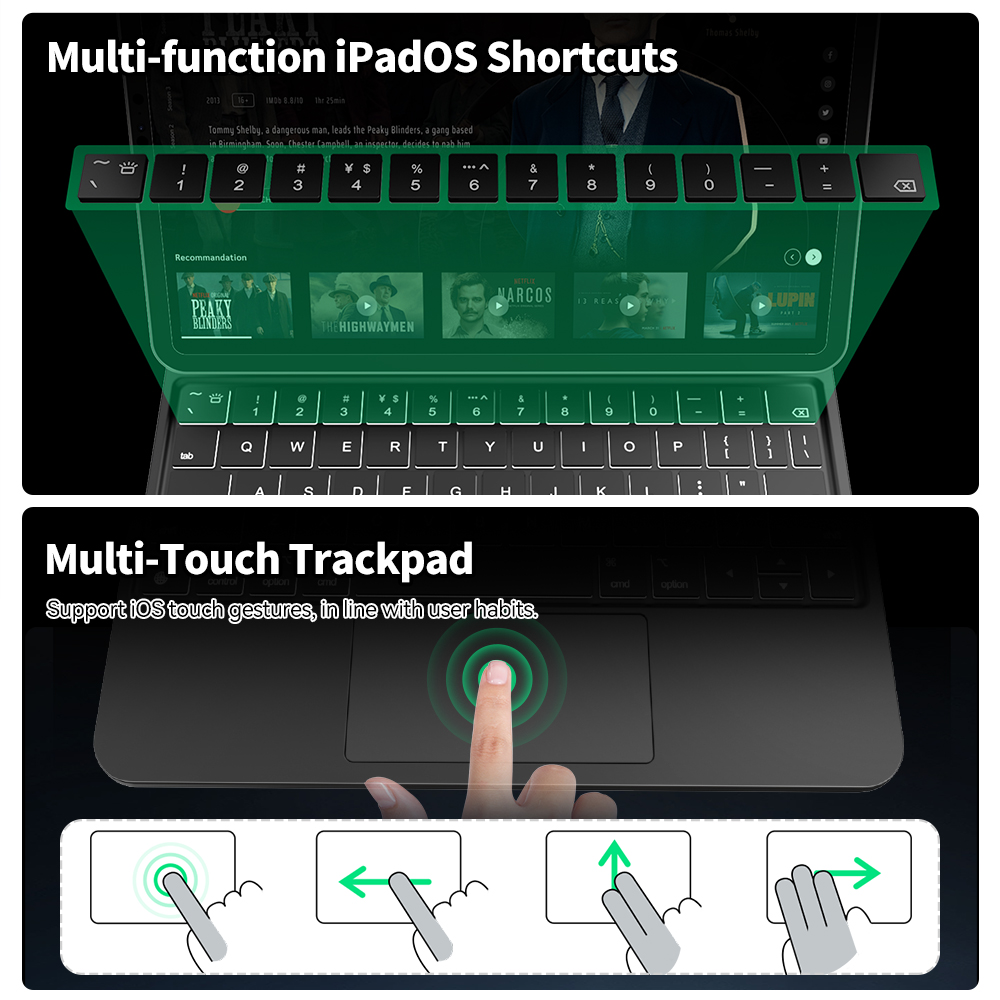 - Integrated Trackpad – Navigate your iPad with a multi-touch touchpad that supports gestures for scrolling, swiping, and clicking.