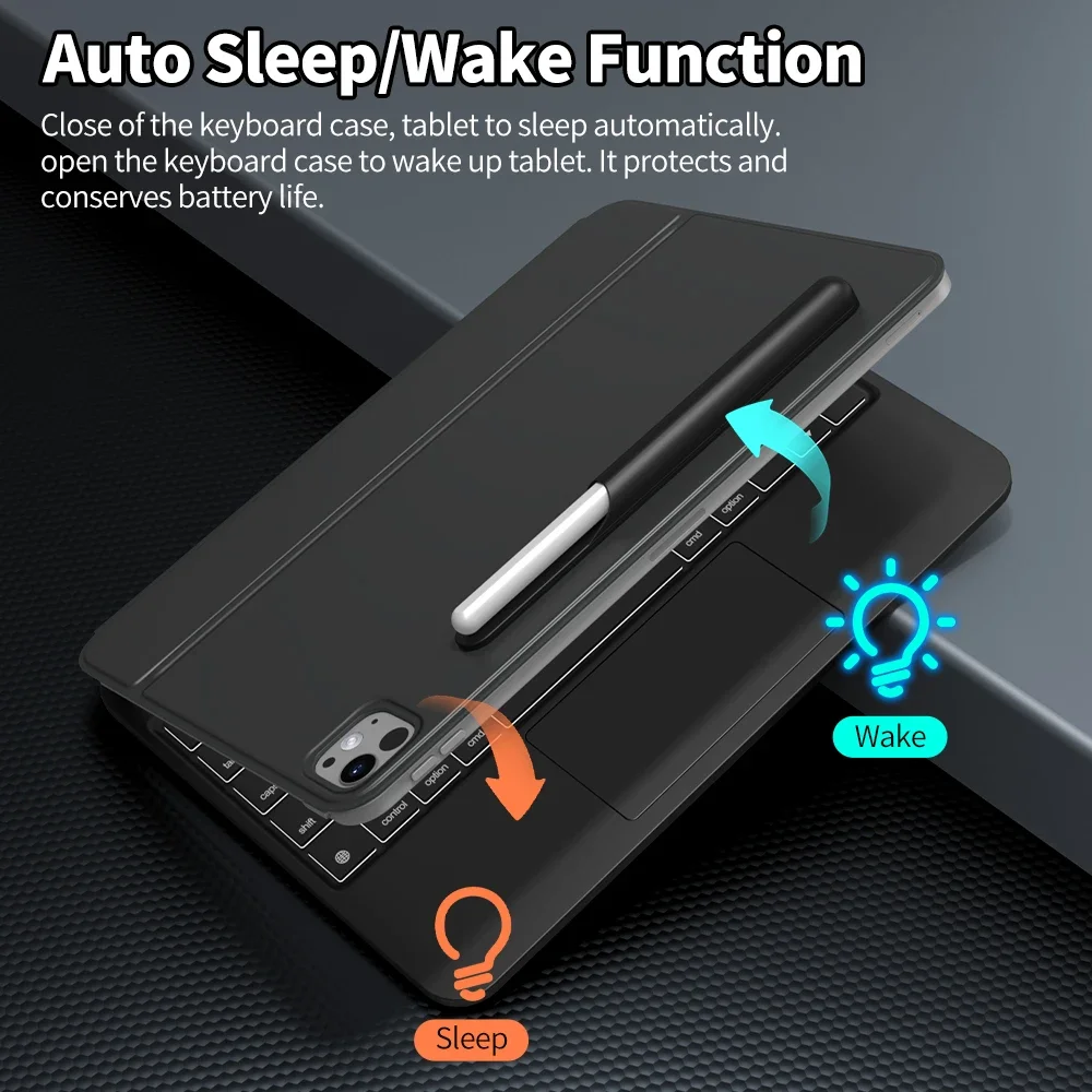 The iPad keyboard case with trackpad delivers everything you need in one device. As a result, you can type efficiently, control your iPad with ease, and enjoy the ergonomic benefits of a magnetic suspension stand. In addition, the plush-lined interior ensures your iPad remains scratch-free, while the durable PU shell provides reliable drop protection.