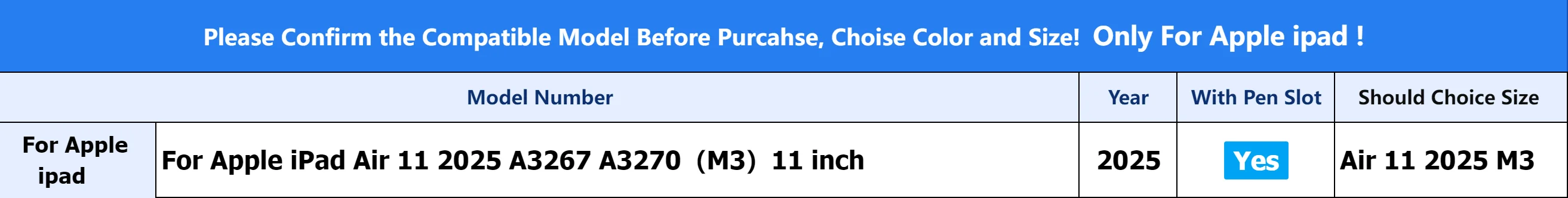 For Apple iPad Air 11 2025 A3267 A3270(M3)11 inch Cover Case