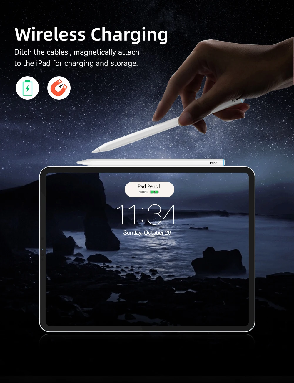 For Apple Pencil 2 1 Wireless Charging Stylus For iPad Air 4 5 Pro 11 12.9 Mini 6 Palm Rejection Tablet Stylus Touch Pen