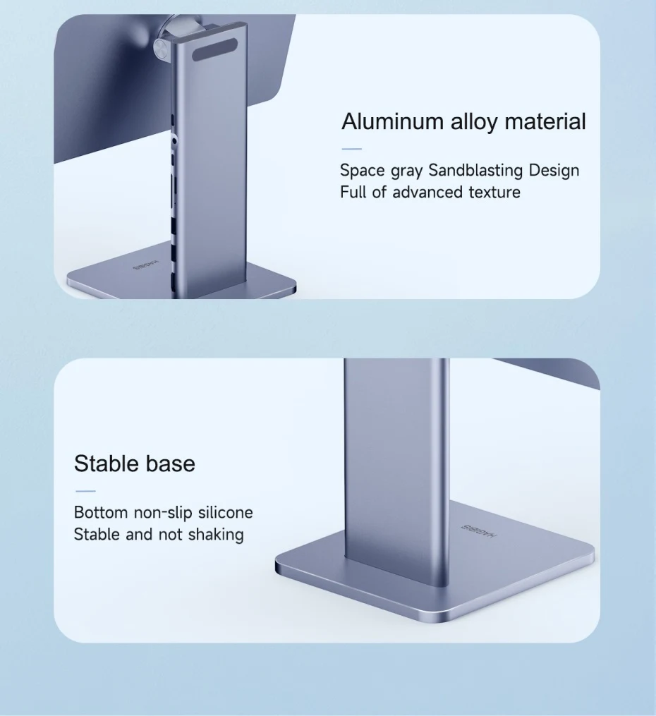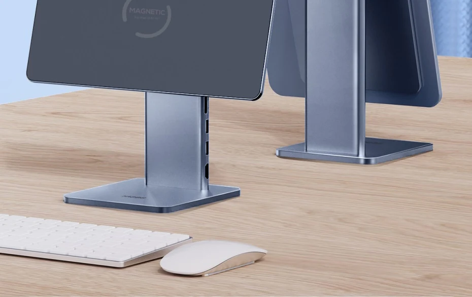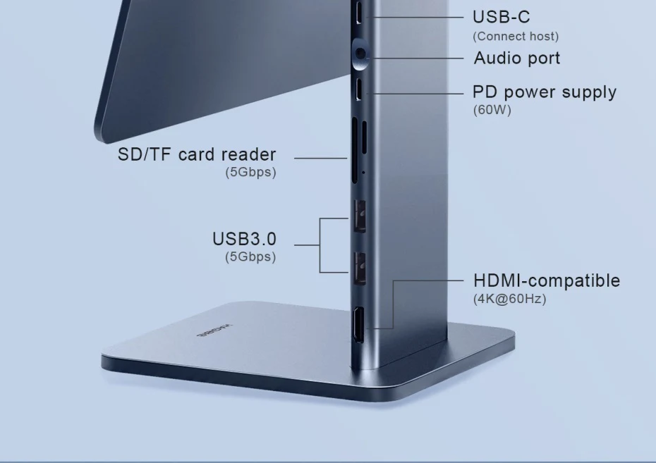 2-in-1 Stand & Hub: Hagibis innovative technology combines iPad stand and docking station make it more convenient. You can not only have a magnetic stand but also have a USB-C docking station with 4K@60Hz HDMI, 60W PD, USB 3.0, AUX and SD/Micro SD Card Reader.