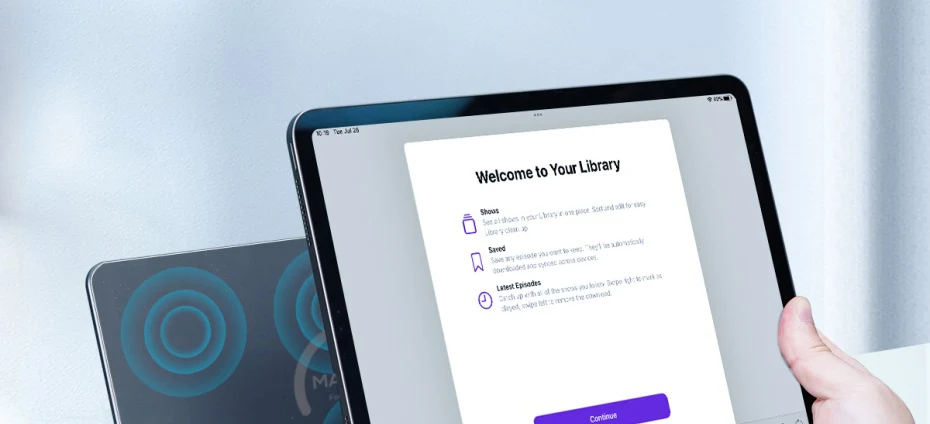 Magnetic iPad Stand: Hagibis new foldable magnetic iPad stand made of full premium aluminum alloy material, along with a thicker, bigger base and a center of gravity design, and strong magnetic suction and all-around non skid rubber protection to ensure wobble-free security.