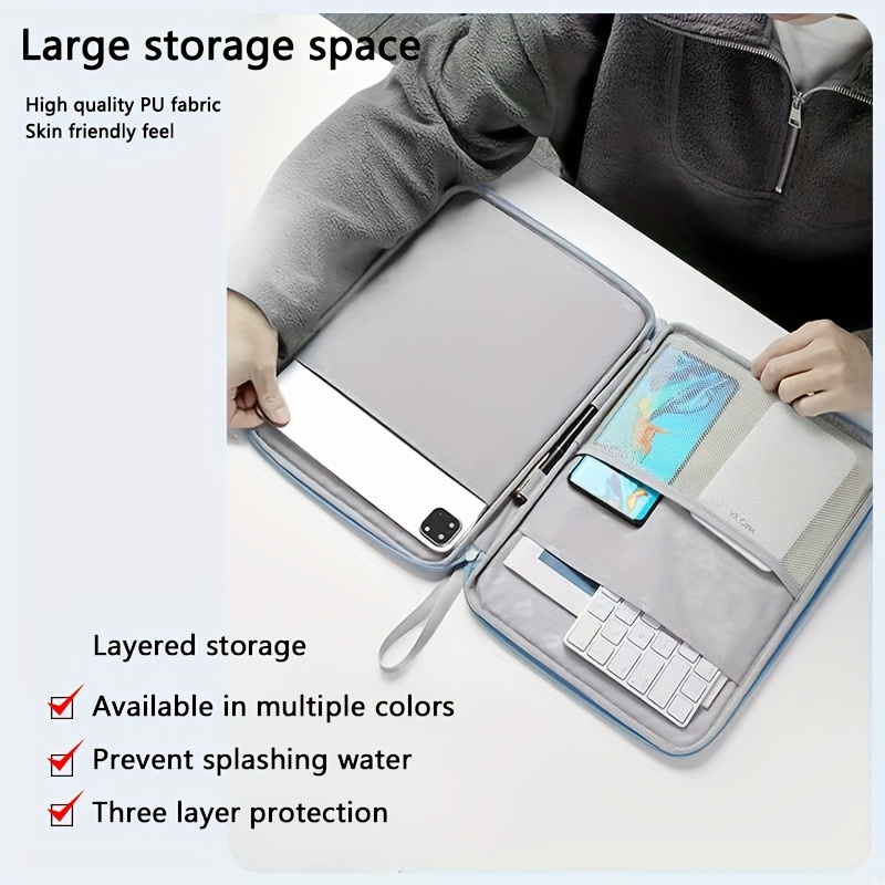 This protective iPad sleeve isn’t just for carrying—it’s built for everyday life. As a result, you can store your tablet and accessories in one compact bag without sacrificing style or convenience. In addition, the waterproof exterior and shockproof padding ensure your iPad remains safe wherever you go. Therefore, the iPad sleeve bag is perfect for students, professionals, and travelers alike.