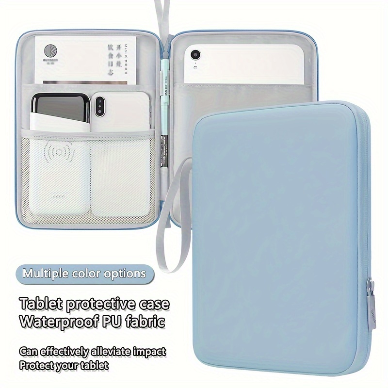 The iPad sleeve bag is the perfect balance of style, storage, and security for your device. Designed to fit most 9–11 inch tablets, including the latest iPad Pro and iPad Air models, this slim yet protective sleeve keeps your device safe from everyday hazards. With its durable waterproof PU exterior, multi-layer shockproof padding, and smart accessory compartments, the sleeve bag is ideal for work, travel, or daily use.