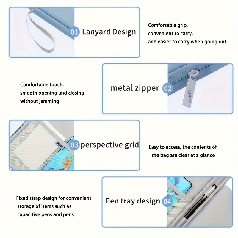 - Features: Waterproof, shockproof, accessory storage, mouse pad function, zipper closure, pen slot