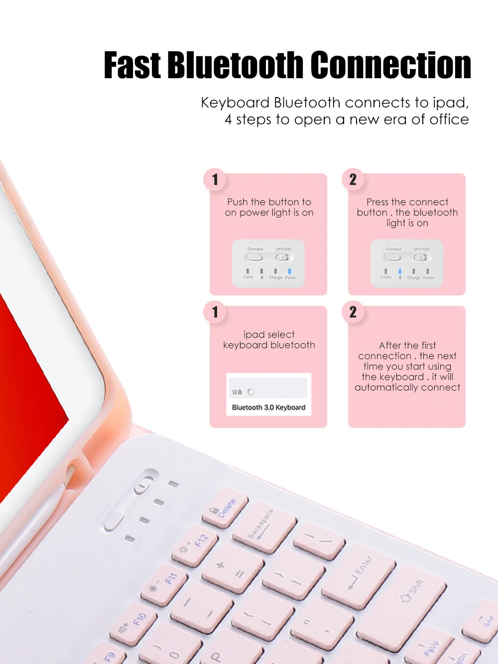 4.After the first connection,the next time you start using the keyboard, it will automatically connect